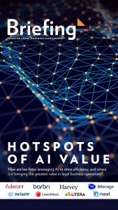 This special edition of Briefing takes a look at how large law firms are harnessing the true power of this novel technology. We map out the hotspots where leaders feel AI is currently delivering the greatest value — reflected in our in-depth feature and our exclusive case study in partnership with Harvey. Plus, several industry experts from Aderant, Intapp, iManage, Litera, Nexl, LexisNexis UK and BARBRI highlight other less explored territories where AI can unlock a goldmine of value, and key steps firms must take to ensure AI is safely and effectively embedded in the fabric of law firm operations.